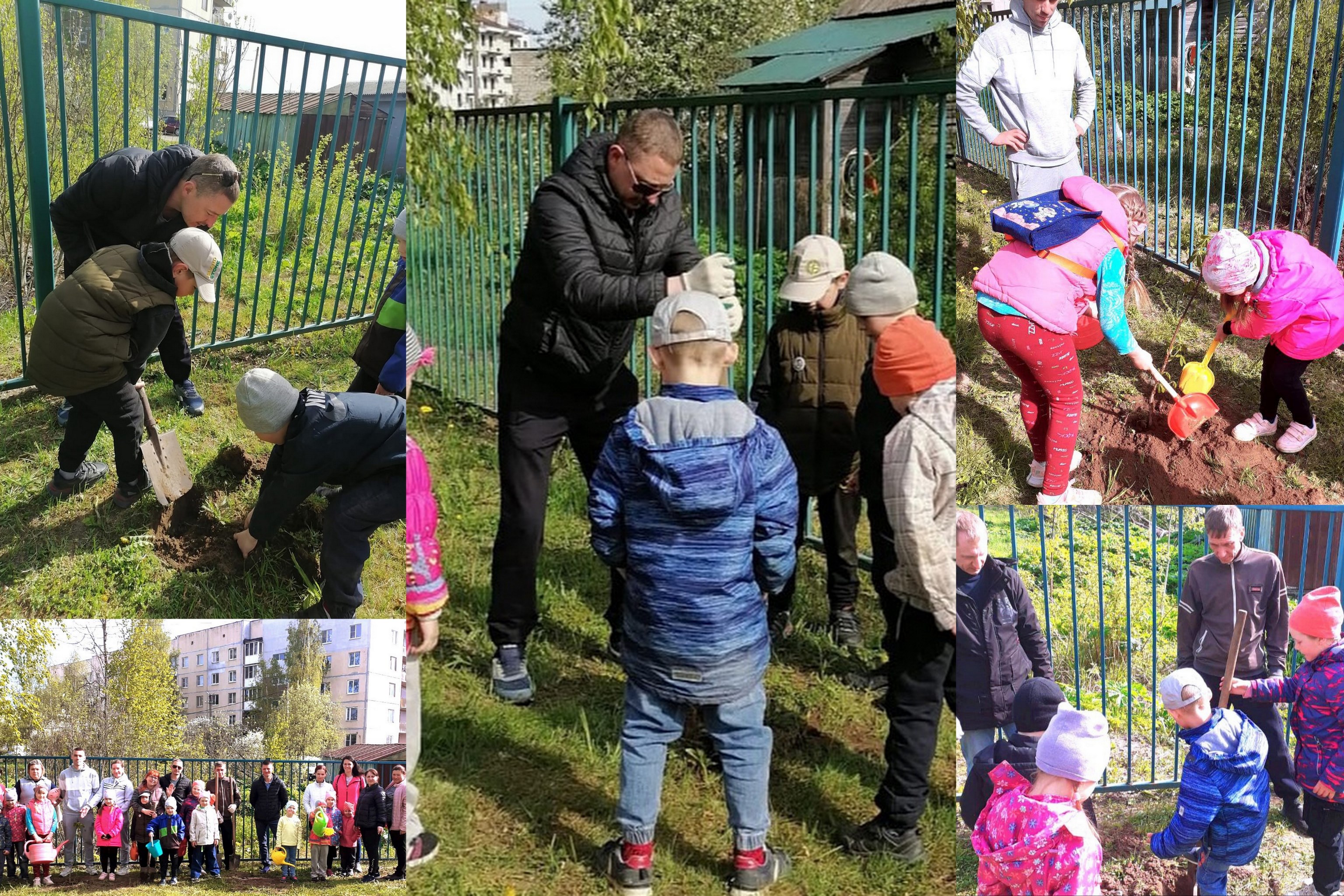 Несколько лет назад в нашем учреждении сложилась добрая традиция: родители с детьми - выпускниками сажают деревья на территории детского сада. Нас радуют своей красотой белоствольные берёзки, стройная сосна, пышные красавицы туи!