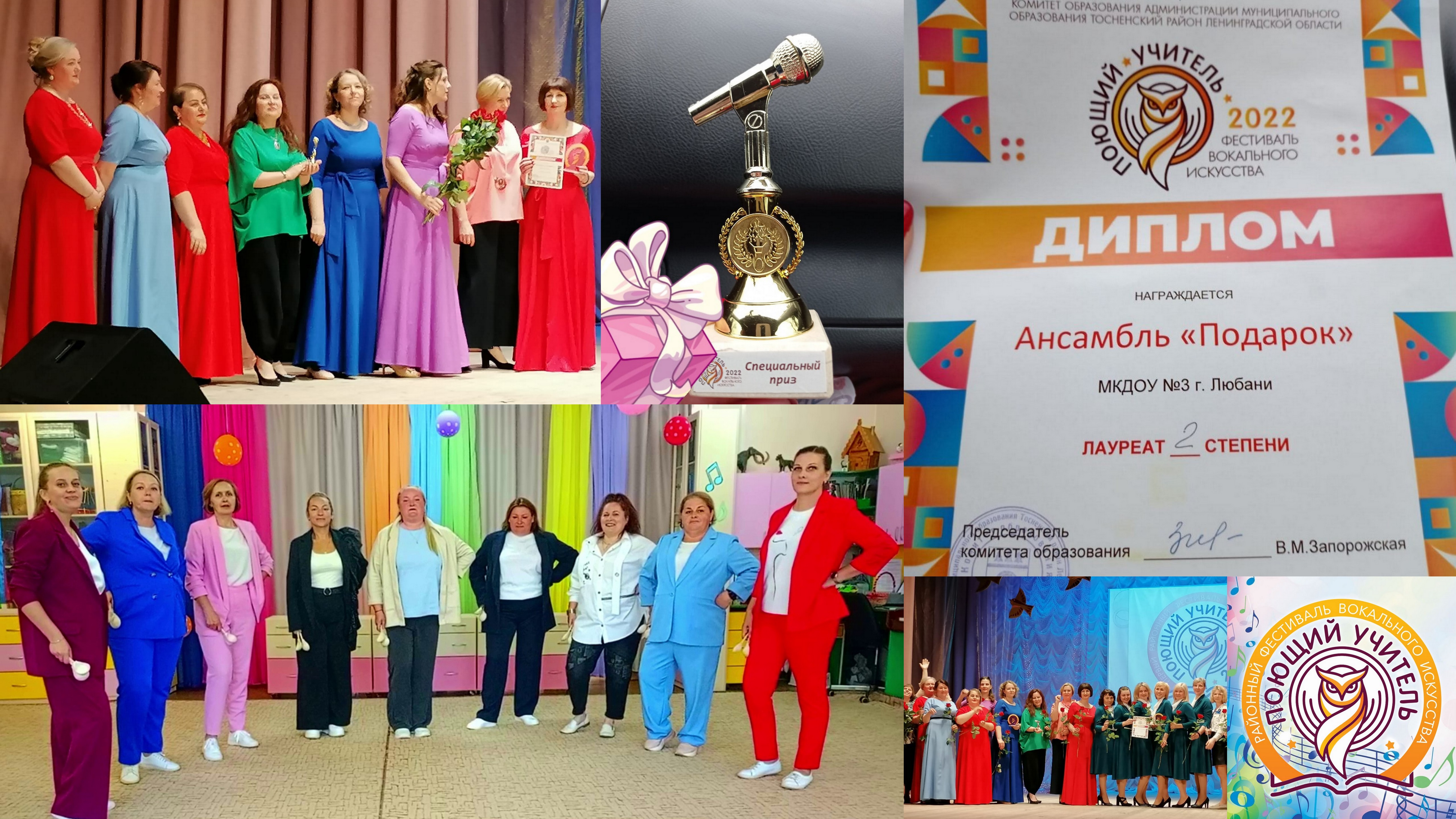 1 сентября 2024 года стартовал III районный фестиваль вокального искусства «Поющий учитель»! Наше учреждение принимает участие в этом мероприятии уже второй раз. В 2022 году вокальный ансамбль педагогов нашего детского сада с ярким названием «Подарок» стал лауреатом второй степени в номинации «Ансамблевое исполнение» и завоевал сердца слушателей, заслуженно получив приз зрительских симпатий по итогам онлайн-голосования! В 2024 году на заочном этапе фестиваля наши талантливые педагоги представили зажигательный номер с песней «Про семью» (сл. Д. Рубина, муз. И. Корнелюк). Творческих успехов и новых побед вам, дорогие педагоги! Держим кулачки и ставим лайки!