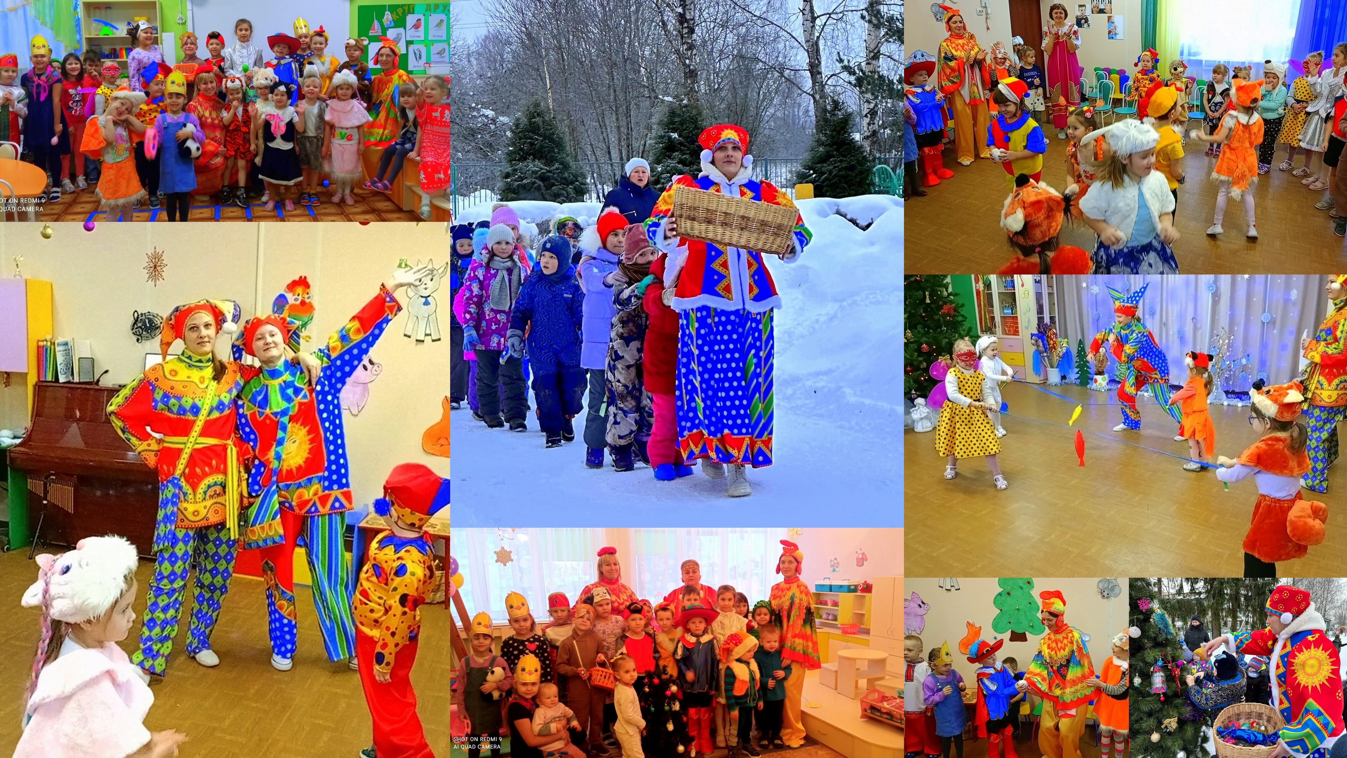 Доброй традицией в нашем детском саду стали рождественские колядки. Радость, задор и отличное настроение подарили ряженые дети и взрослые всем вокруг! Они исполняли колядные песни, заклички, прославляя Коляду, водили хороводы. С пожеланиями богатства и счастья ряженые обошли весь детский сад, заглянули в гости в каждую группу, навестили всех сотрудников! А хозяева щедро угощали гостей сладостями. В завершении колядования дети прошли хороводом вокруг нашей красавицы-ёлочки. Веселье продолжилось и на улице! Взрослые и дети играли в народные игры, водили хороводы, плясали и пели песни! Святочные гулянья продолжаются!
