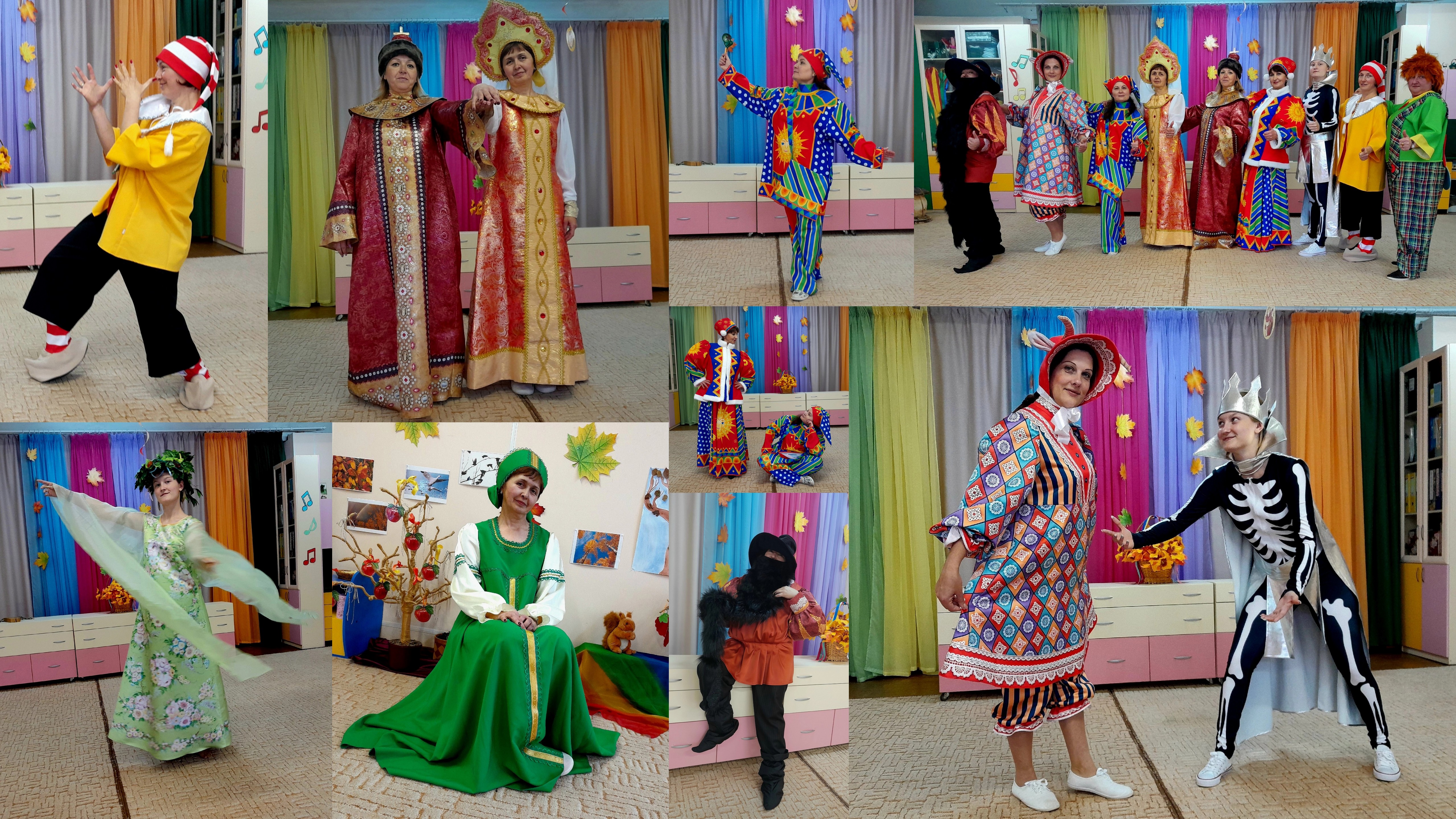 В этом году наш музыкальный зал благодаря дизайнерским идеям музыкального руководителя Герасимовой Нины Исмаиловны отличался какой-то особой красотой, близкой и понятной детям. А сказочные герои, роли которых мастерски исполнили педагоги, поражали своей оригинальностью и разнообразием. Пусть воспоминания о праздниках и прекрасное настроение сохранятся надолго!