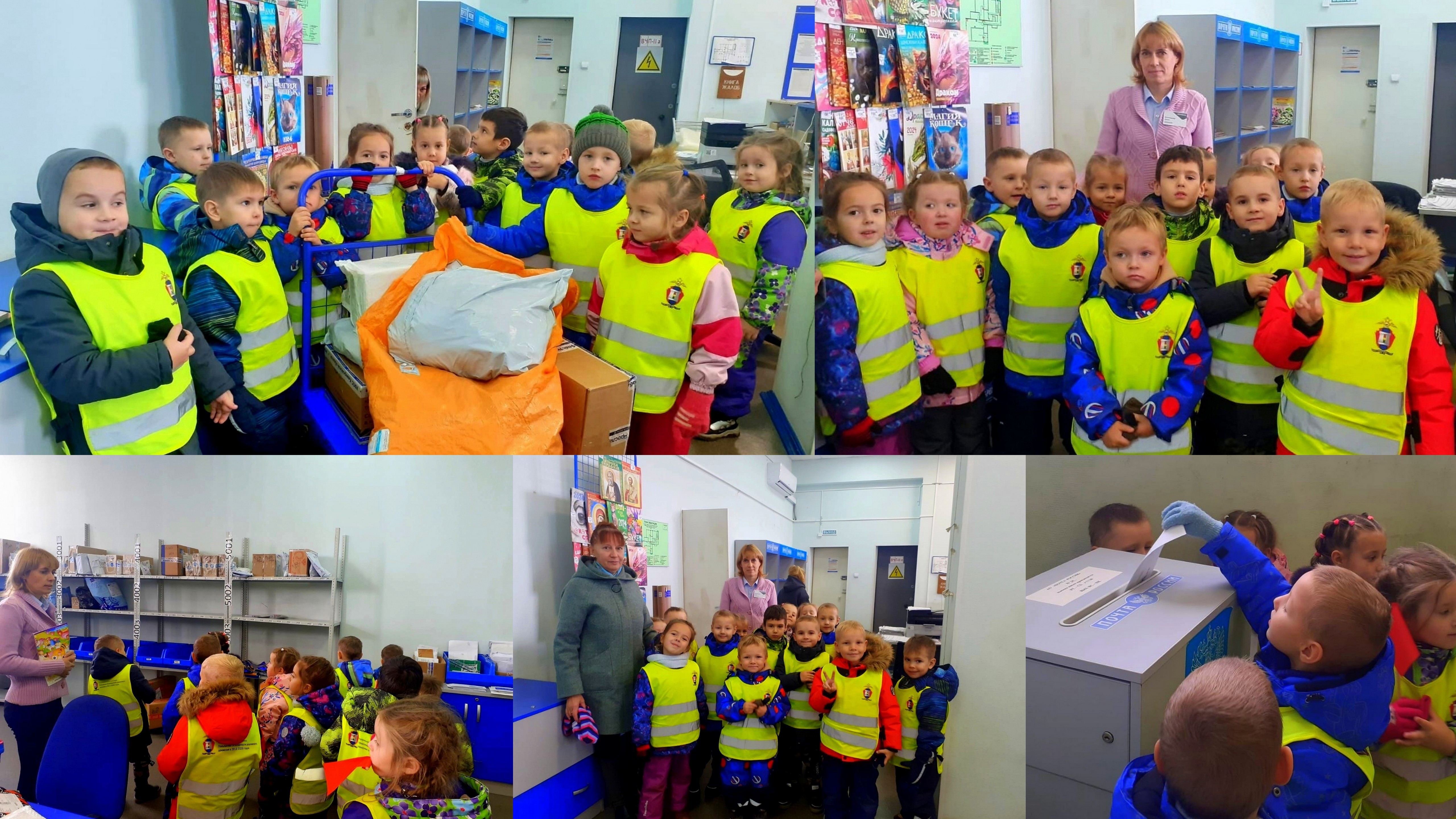 Ребята узнали, что почта – это связь между людьми, которые живут далеко друг от друга. Сотрудники почтового отделения показали детям специальное помещение, где хранят и сортируют письма и посылки, С каким азартом ребята помогали сотрудникам почты везти тележку с посылками для дальнейшей разгрузки. Увидели, какие действия оператор совершает на компьютере, чтобы выдать посылку адресату.