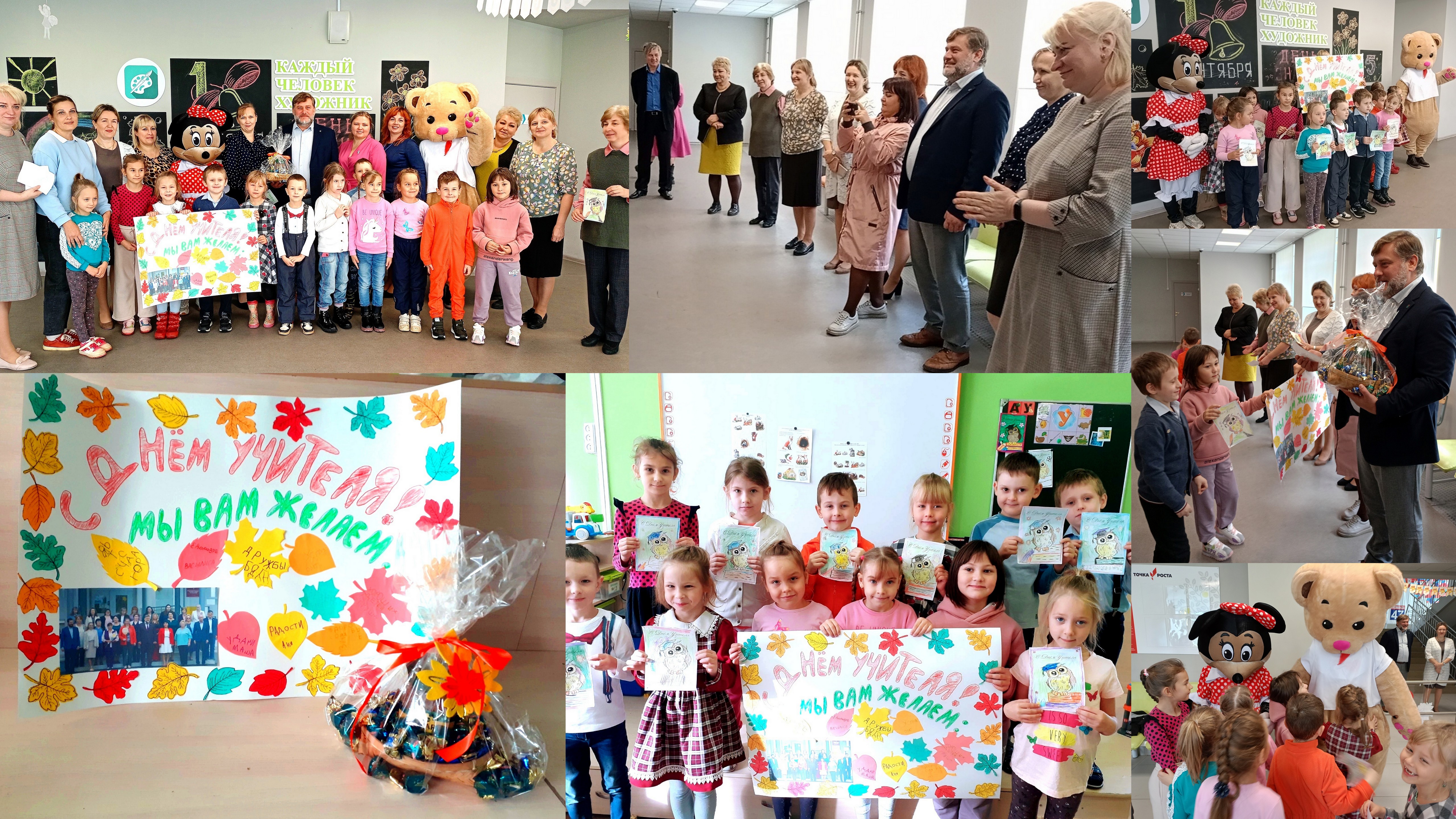 В этот праздничный день ребята подготовительной группы "Сказка" поздравили с праздником учителей Любанской школы им. А. Н. Радишева.