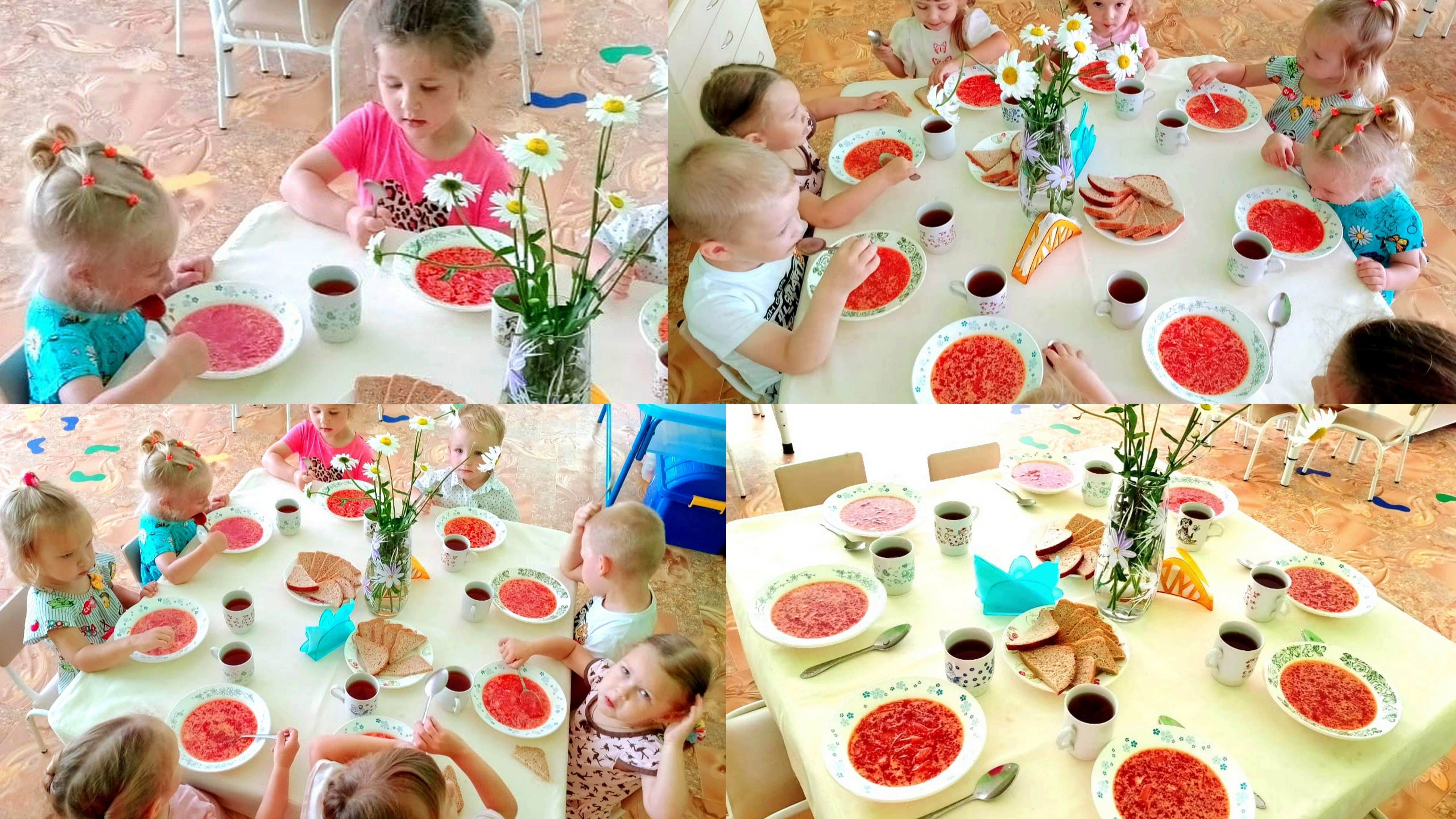 Правильное питание – это основа здоровья человека. Одним из важных составляющих детского меню в детском саду являются первые блюда. Супы – это источник энергии и главный поставщик питательных веществ, так необходимых растущему организму. Нашим летям очень нравится борщ, приготовленный поварами детского сада Натальей Николаевной Наумовой и Ольгой Александровной Филипповой. И обед всегда вкусней, если его сопровождает красивая сервировка.