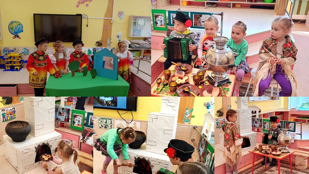 Наш детский сад продолжает принимать участие во Всероссийской акции «Ценности будущего в традициях народной культуры». 19 мая свой праздник отмечала царица русской избы — русская печь. Русская печь считается гордостью русского народа, кормилицей, хранительницей уюта и тепла. История русской печи насчитывает не одну сотню лет. Несмотря на это русская печь успешно дожила до нашего времени. Интересное, познавательное занятие для детей провела Людмила Николаевна Глазырина, воспитатель группы "Знайки". Ребята пригласили в гости для уютных "посиделок" у русской печки друзей из группы «Звёздочки». Ребята узнали много интересного и увлекательного об истории русской печи, учились накрывать стол для традиционного русского чаепития, пели, играли на русских народных инструментах.