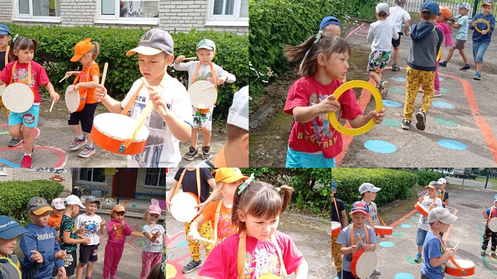 Музыкальные занятия на свежем воздухе проводит для детей музыкальный руководитель Нина Исмаиловна Герасимова. На наших площадках часто звучит музыка. Дети танцуют, поют, играют на музыкальных инструментах. Одно из направлений работы нашего специалиста – развитие чувства ритма на основе инновационных технологий. Ритмические упражнения очень нравятся детям, тем более, что для этого у нас есть разнообразные музыкальные инструменты, в том числе и нетрадиционные и, конечно, собственные ладошки!