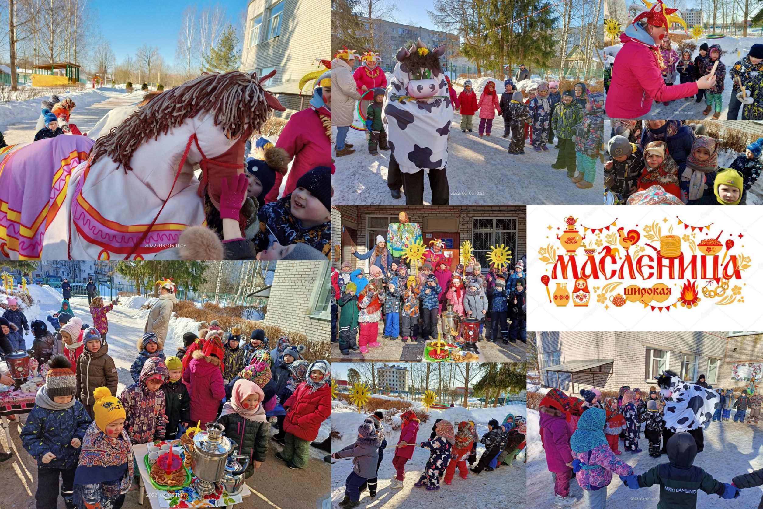 С 26 февраля по 6 марта в России празднуют Масленицу. И в нашем детском саду уже с понедельника начались весёлые забавы, повсюду звучали масленичные песни и заклички. Дети зазывали Масленицу, ходили друг к другу в гости, катали Масленицу на санях. А сегодня все – от мала до велика высыпали на улицу, где взрослые устроили для детей настоящую Широкую Масленицу с песнями, играми, хороводами и, конечно, горячим чаем с ароматными блинами!