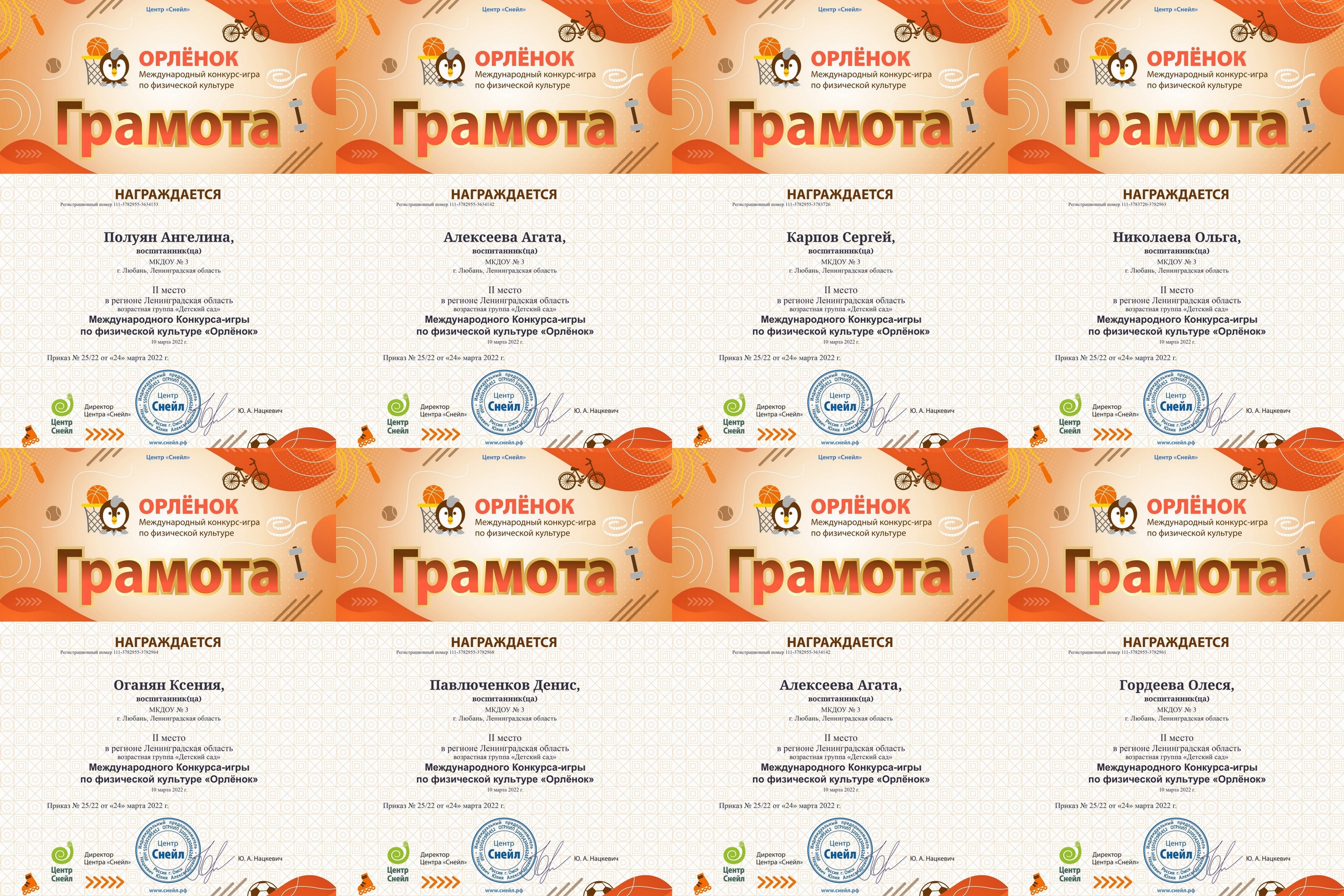 Подведены итоги Международного конкурса-игры по физической культуре "Орлёнок", который проходил с 10 по 21 марта 2022 года!