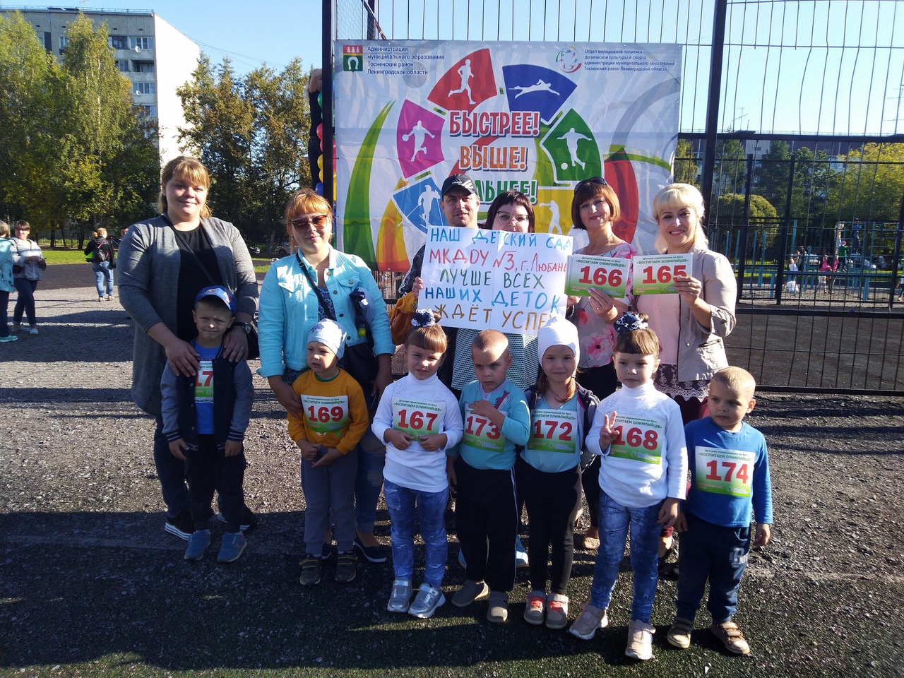 7 сентября 2019 года в г. Тосно состоялись районные соревнования по бегу "Воспитаем олимпийцев". Воспитанники нашего детского сада приняли активное участие в этом мероприятии. На соревнованиях наш детский сад представляли: Бочарников Денис, Бочарников Дима, Максименко Сева, Суханов Руслан, Терещенко Лиана, Терещенко Алиса, Кулаков Никита, Лукьянова Маша, Сердюкова Александра, Фатеев Ваня, Филиппов Витя, Цветков Алан, Голубцова Катя, Лихачёв Петя. Финалистом районных соревнований в возрастной группе мальчиков 2013 года рождения стал Витя Филиппов. Поздравляем Витю с этой победой! Благодарим всех воспитанников за участие в соревнованиях, родителей - за содействие и поддержку, инструктора по физической культуре Лукьянову Екатерину Николаевну - за организацию и подготовку участников!