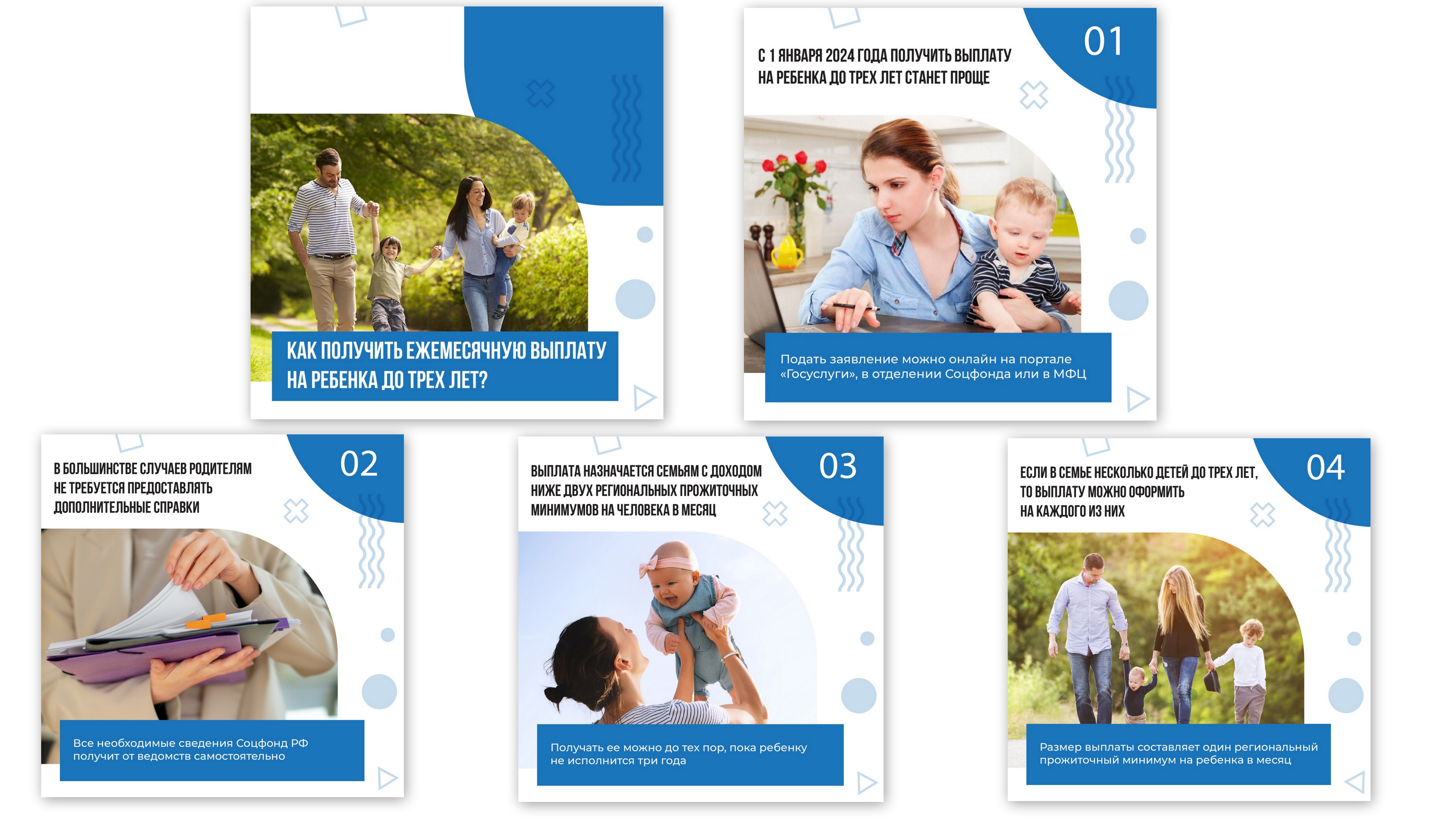 Получить ежемесячную выплату на ребенка до трех лет теперь стало еще проще! Больше не нужно собирать и оформлять бесконечные справки. Также, если у вас несколько детей в возрасте до трех лет, то выплату можно оформить на каждого ребенка.