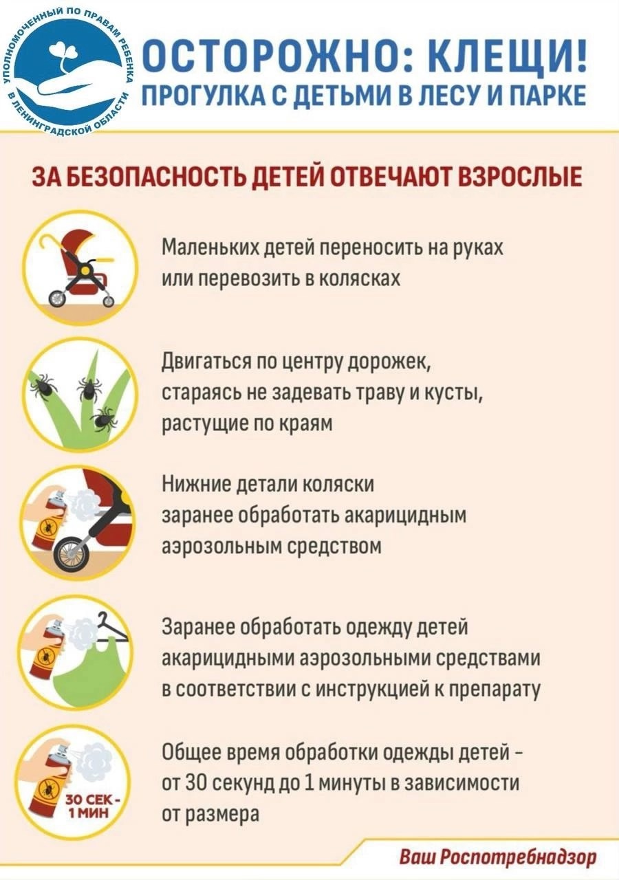 Если нет возможности быстро попасть к врачу, можно удалить клеща самостоятельно. Для этого используют пинцет или специальные приспособления - выкручиватели, которые продаются в аптеке. После удаления клеща рану обрабатывают антисептиком. Важно: нельзя давить клеща пальцами, капать на него маслом или спиртом, а также помещать в одну ёмкость клещей, снятых с нескольких человек. Если после укуса клеща появились неприятные симптомы (температура, интоксикация, светобоязнь), необходимо как можно скорее обратиться к врачу в поликлинику по месту прикрепления. Берегите детей и будьте здоровы!