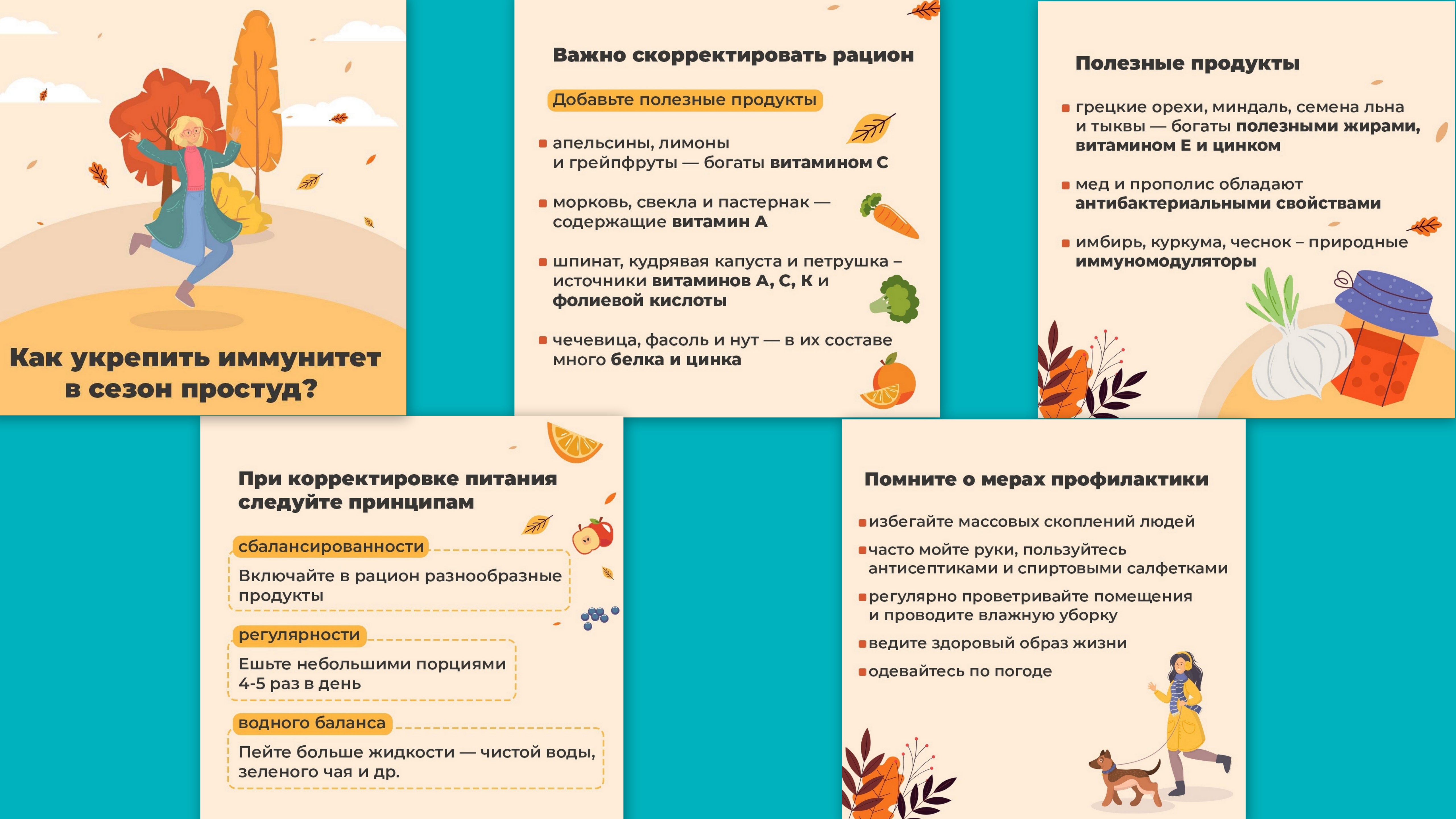 Осень – время заботы о здоровье! Похолодание и сокращение светового дня ослабляют иммунитет и делают его подверженным к заболеваниям. Сейчас организму особенно нужна поддержка. Специалисты Роспотребнадзора собрали несколько советов о том, как правильно скорректировать рацион питания, чтобы укрепить иммунную систему.